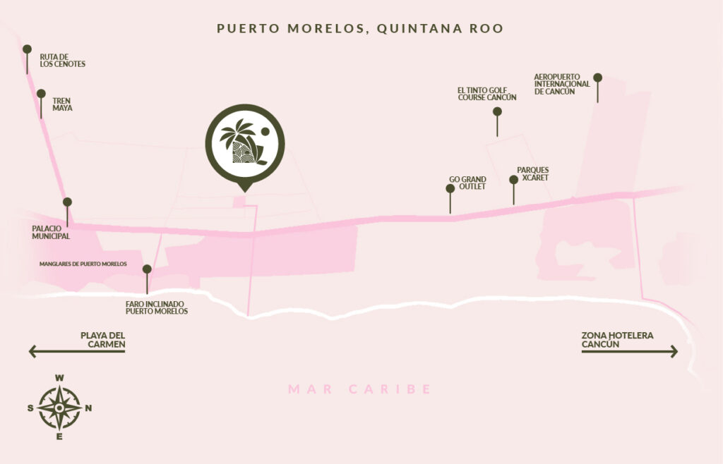 Vita e Mare cuenta con una ubicación privilegiada en Puerto Morelos, el cual se ha convertido en el corazón de una zona que se proyecta como el próximo gran destino para quienes buscan combinar el encanto residencial con las posibilidades comerciales de alto crecimiento.